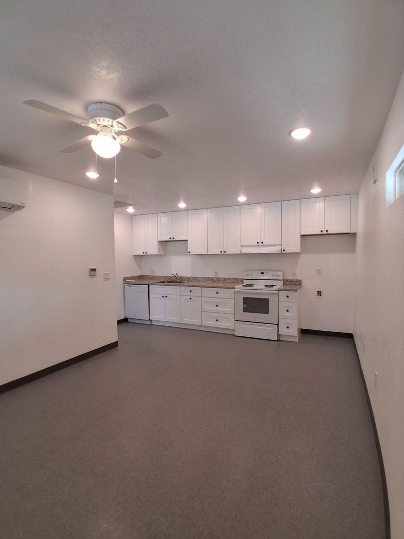 Discover a single-level 1BR, 1BA apartment in Fresno featuring an in-unit washer and dryer and modern finishes. The kitchen includes a refrigerator, dishwasher, electric stove, and granite countertops, while tile flooring runs throughout the home. Comfort is provided by ceiling fan(s) and a mini-split HVAC system. Street parking is available, and the unit is offered on a 1-year lease. Located for convenient everyday living, this apartment delivers practical amenities in a straightforward layout.